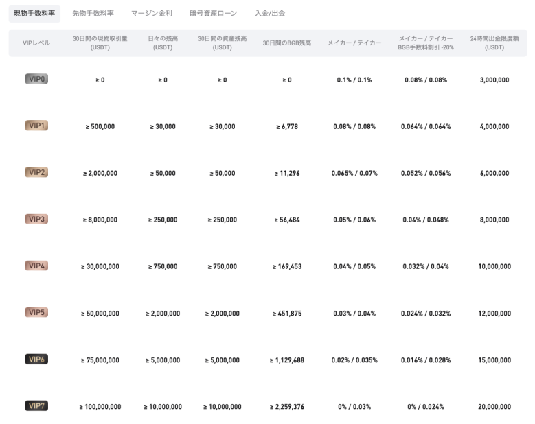 現物・先物ともにグローバルで見ても競争力のある料率を採用している。独自トークン(BGB)の保有やVIPランクに応じた割引制度もあり、取引量が増えてくると自然とコストを抑えやすくなる仕組みだ。