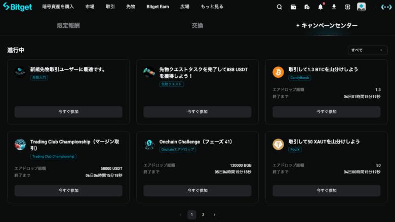 Bitgetでは新規登録者向けに取引ボーナスやエアドロップ企画が行われることがある。期間限定の条件が設定されていることが多いので、参加するなら公式のイベントページを定期的にチェックしておこう。