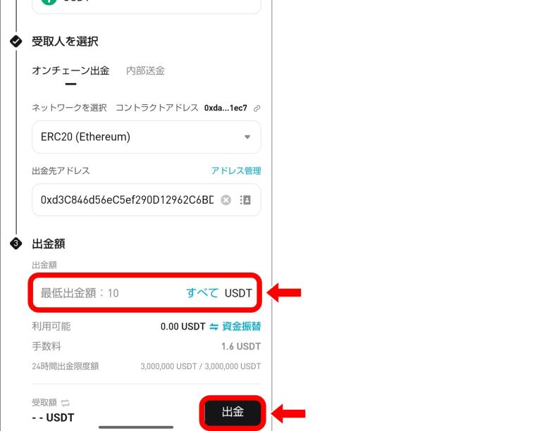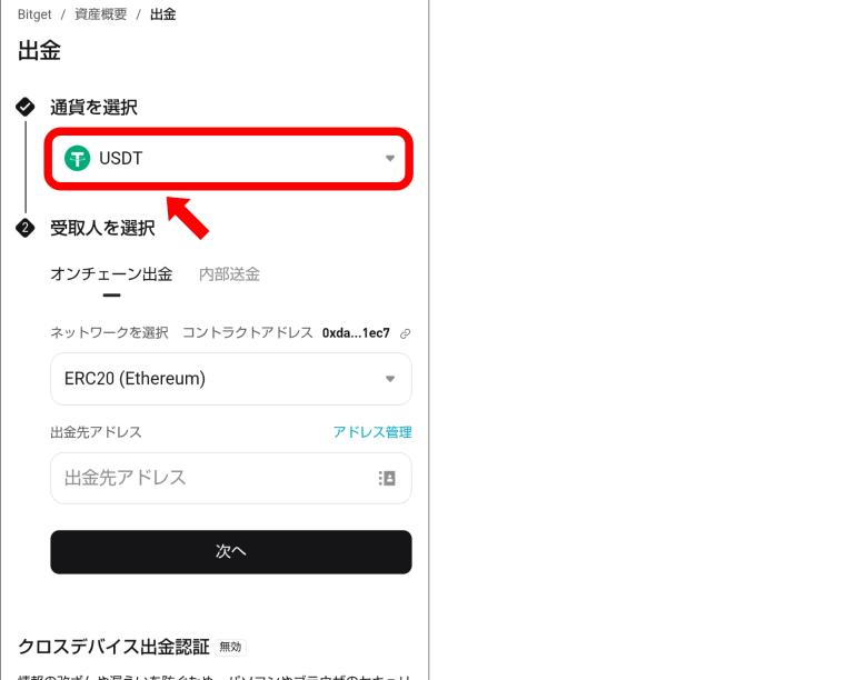 また、USDTを出金するとき、TRC20やERC20といった複数のネットワークが選択肢に出てくる。ここで送金先が対応していないネットワークを選んでしまうと、資産が戻ってこない可能性がある。絶対に間違えたくない箇所だ。