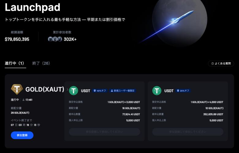 新規プロジェクトのトークン販売に参加できる。早期から有望なプロジェクトに関わりたい人向けの機能だ。