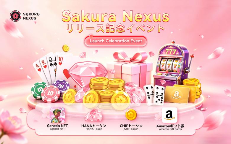株式会社AI on Web3がWeb3マルチゲームプラットフォーム「Sakura Nexus」のPCブラウザ版を2026年4月22日に正式リリースした。総額30億CHIPを分配するランキングイベントとAmazonギフト券が当たるSNSキャンペーンの内容、13種類のゲーム、決済手段、Genesis NFT向け機能、法令対応をまとめる。